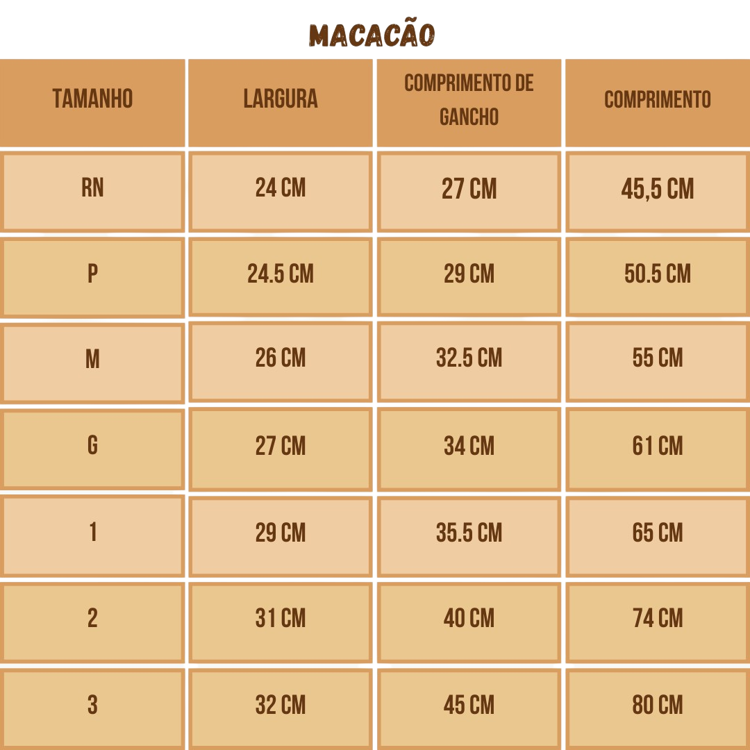 *Todos os tamanhos estão identificados por centímetros e correspondem ao tamanho real da peça.